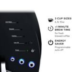 - Auto-off: An auto-off feature is easily programmed to turn off your coffee maker after it has been idle for 2 hours, helping to save energy.