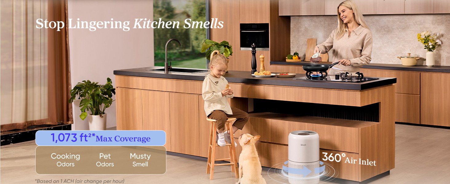 - HIGH-PERFORMANCE AIR PURIFICATION: Powerful 56W High-Torque Motor paired with a 143 CFM CADR ensures fast, effective air cleaning. Cleans rooms up to 1,073 ft² with the original filter. The Levoit original filter is HEPA-grade while operating in Sleep Mode with industry-tested results. Compact Size: 8.7″ × 8.7″ × 14.2″ | Weight: 7.9 lbs – ideal for home, bedroom, or office.