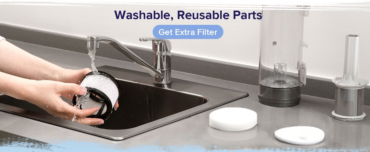 - Washable Filters: Get the most out of your filters by washing and reusing them.