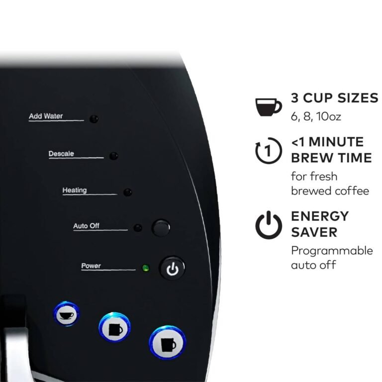 - Simple button controls: Just insert a pod, select your desired cup brew size, and brew a great-tasting cup in under a minute.